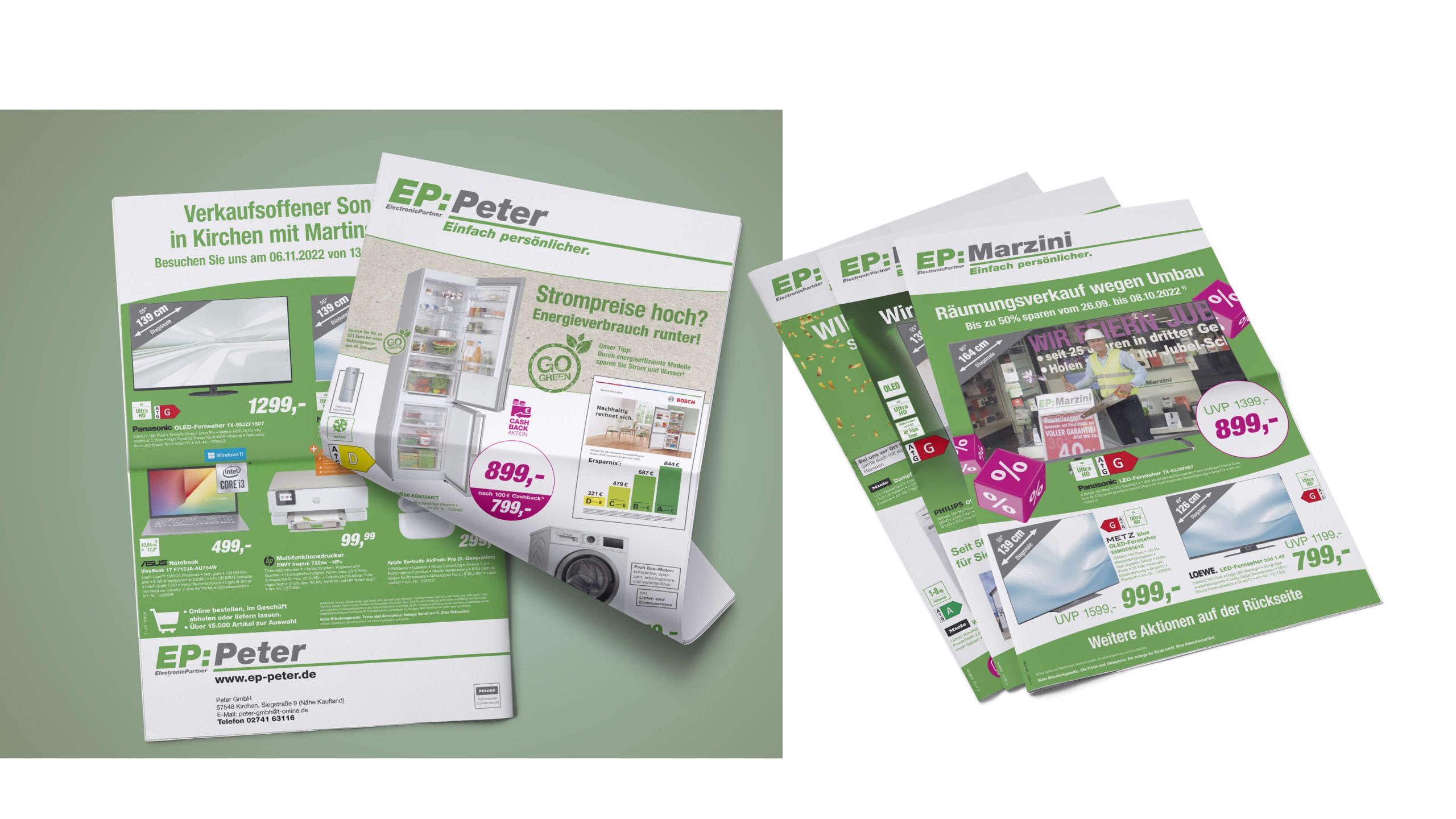 Bei der individuellen Händlerwerbung unterstützt EPS die EP:Markenhändler im Zuge von verschiedenen Anlässen wie Neueröffnungen, Jubiläen, Sortimentserweiterungen und weiteren Events. Neben der Gestaltung der Werbemittel berät EPS die Händler umfassend.